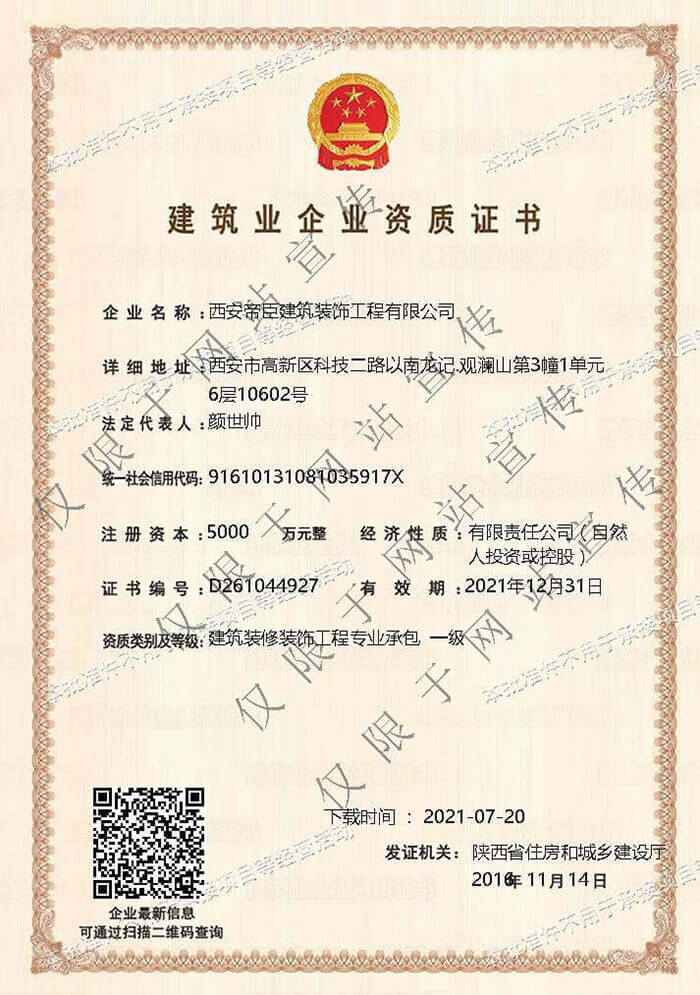 西安帝臣建筑裝飾工程有限公司于2013年注冊(cè)成立,注冊(cè)資金5000萬元。